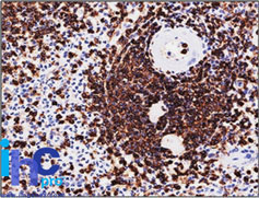 Formalin-paraffin human spleen stained with CD45RA Ab (158-4D3).