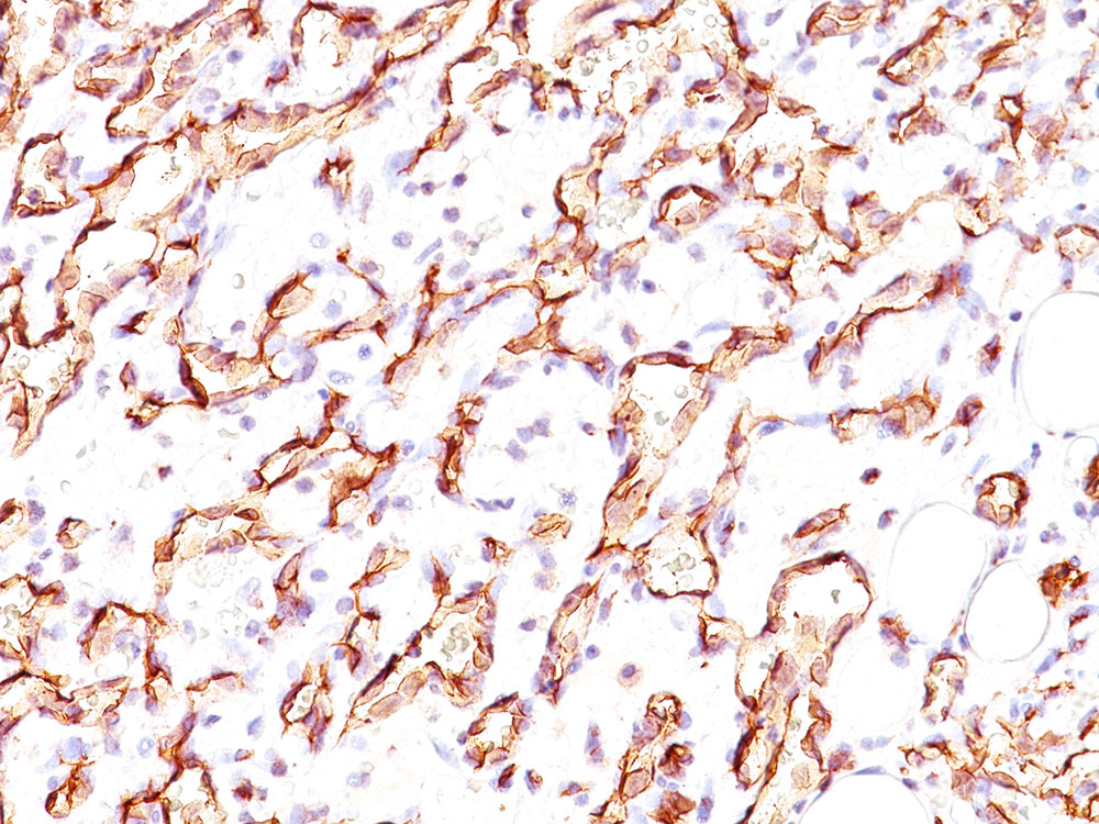 Formalin-paraffin angiosarcoma stained with Podocalyxin Ab (3D3).
