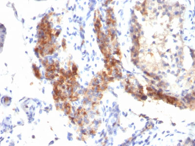 Formalin-fixed, paraffin-embedded human Testicular Carcinoma stained with FOXP3 Monoclonal Antibody (SPM579). |