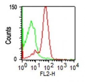 Flow Cytometry of PBMC using CD43 Monoclonal Antibody (SPM503) (red) or isotype control (green) |