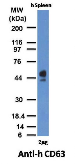 Western Blot of human Spleen Lysate with CD63 Monoclonal Antibody (SPM524)