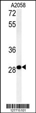 C11orf46 Antibody (C-term) (Cat. APR03414G) western blot analysis in A2058 cell line lysates (35ug/lane).This demonstrates the C11orf46 antibody detected the C11orf46 protein (arrow). |
