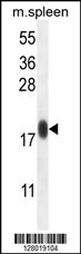 IMMP1L Antibody (C-term) (Cat. APR03487G) western blot analysis in mouse spleen tissue lysates (35ug/lane).This demonstrates the IMMP1L antibody detected the IMMP1L protein (arrow). |