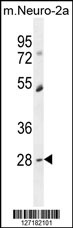 RP11-529I10.4 Antibody (Center) (Cat. APR03488G) western blot analysis in mouse Neuro-2a cell line lysates (35ug/lane).This demonstrates the RP11 antibody detected the RP11 protein (arrow). |