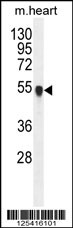 PPM1L Antibody (C-term) (Cat. APR03513G) western blot analysis in mouse heart tissue lysates (35ug/lane).This demonstrates the PPM1L antibody detected the PPM1L protein (arrow).