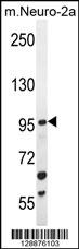 C4orf21 Antibody (N-term) (Cat. APR03546G) western blot analysis in mouse Neuro-2a cell line lysates (35ug/lane).This demonstrates the C4orf21 antibody detected the C4orf21 protein (arrow).