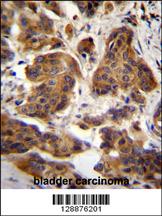 C4orf21 Antibody (N-term) (Cat. APR03546G)immunohistochemistry analysis in formalin fixed and paraffin embedded human bladder carcinoma followed by peroxidase conjugation of the secondary antibody and DAB staining.This data demonstrates the use of C4orf21 Antibody (N-term) for immunohistochemistry. Clinical relevance has not been evaluated. |