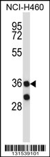 MARCH11 Antibody (C-term) (Cat. APR03870G) western blot analysis in NCI-H460 cell line lysates (35ug/lane).This demonstrates the 40613 antibody detected the 40613 protein (arrow). |