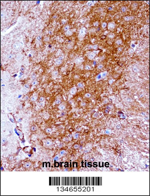 Mouse Ntrk2 Antibody (Center) (APR03889G)immunohistochemistry analysis in formalin fixed and paraffin embedded mouse brain tissue followed by peroxidase conjugation of the secondary antibody and DAB staining.This data demonstrates the use of Mouse Ntrk2 Antibody (Center) for immunohistochemistry. Clinical relevance has not been evaluated. |