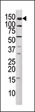 The anti-MET-Y1349 Pab (Cat. APR05133G) is used in Western blot to detect MET-Y1349 in mouse kidney tissue lysate.