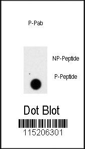 Dot blot analysis of PRL Antibody (S207) Pab (Cat. APR05224G) on nitrocellulose membrane. 50ng of Phospho-peptide or Non Phospho-peptide per dot were adsorbed. Antibody working concentrations are 0.5ug per ml. |