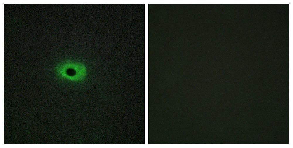 Immunofluorescence analysis of HeLa cells, using TNF12 antibody.