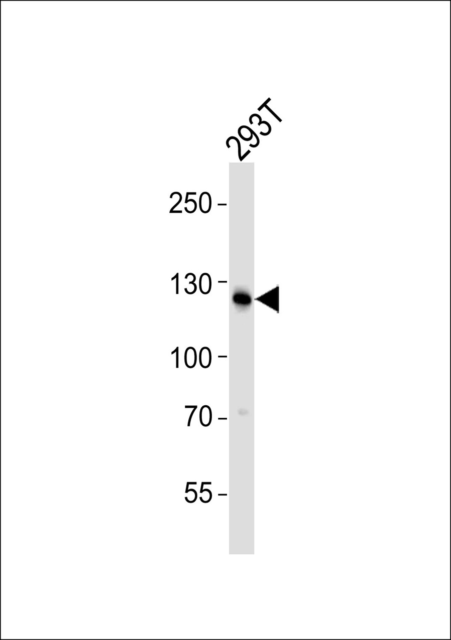 Western blot analysis of lysate from 293T cell line,using RAD21 Antibody(APR05415G). APR05415G was diluted at 1:1000. A goat anti-rabbit IgG H&L(HRP) at 1:5000 dilution was used as the secondary antibody.Lysate at 35ug. |