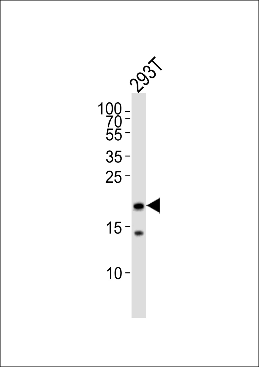 Western blot analysis of lysate from 293T cell line,using RPL26L Antibody(APR05416G). APR05416G was diluted at 1:1000. A goat anti-rabbit IgG H&L(HRP) at 1:5000 dilution was used as the secondary antibody.Lysate at 35ug. |