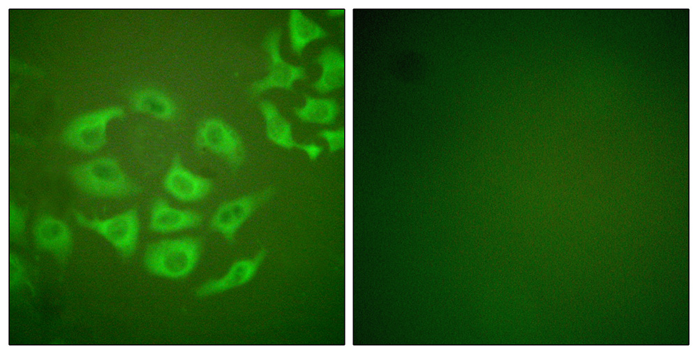 Immunofluorescence analysis of HepG2 cells, using MMP-10 antibody.