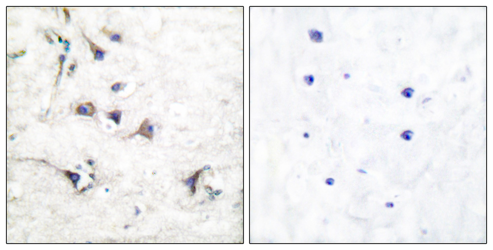 Immunohistochemical analysis of paraffin-embedded human brain tissue using Ezrin antibody . |