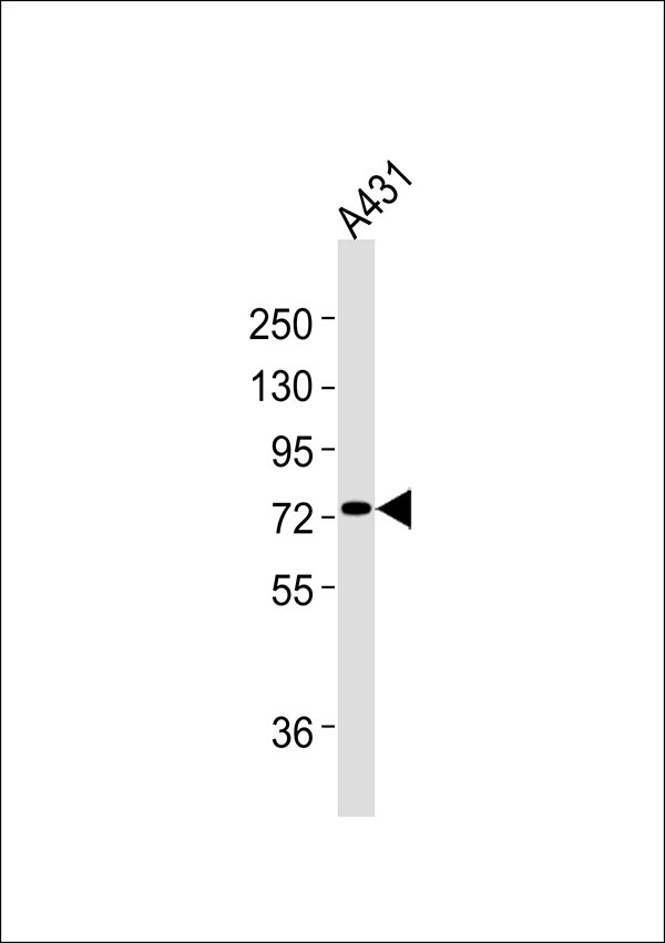 Anti-PFKL Antibodyat 1:1000 dilution + A431 whole cell lysates Lysates/proteins at 20 μg per lane. Secondary Goat Anti-Rabbit IgG, (H+L),Peroxidase conjugated at 1/10000 dilution Predicted band size : 85 kDa Blocking/Dilution buffer: 5% NFDM/TBST. |