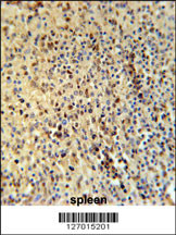 SPT13 Antibody (Center) (Cat. APR05654G) immunohistochemistry analysis in formalin fixed and paraffin embedded human spleen tissue followed by peroxidase conjugation of the secondary antibody and DAB staining. This data demonstrates the use of the SPT13 Antibody (Center) for immunohistochemistry. Clinical relevance has not been evaluated.