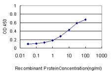 Detection limit for recombinant GST tagged MTUS1 is approximately 0.3ng/ml as a capture antibody. |