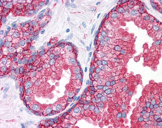 Anti-CD9 antibody IHC of human prostate. |
