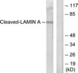 Lamin A (Cleaved-Asp230) Antibody detects endogenous levels of fragment of activated Lamin A resulting from cleavage adjacent to Asp230.