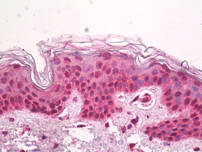 Anti-HIRIP3 antibody IHC of human skin. |