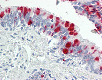 Anti-USP36 antibody IHC of human lung, respiratory epithelium. |