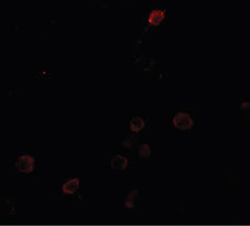 Immunofluorescence of SEPT1 in Raji cells with SEPT1 antibody at 20 ug/ml. |