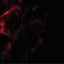 Immunofluorescence of ZF21 in human kidney tissue with ZF21 antibody at 20 ug/ml. |