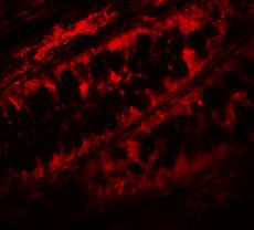 Immunofluorescence of Periphilin in human colon tissue with Periphilin antibody at 5 g/mL.