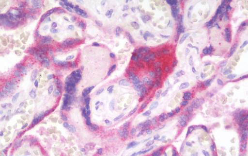 Anti-CD59 antibody IHC staining of human placenta.