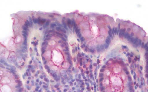 Anti-EMA / MUC1 antibody IHC staining of human colon.