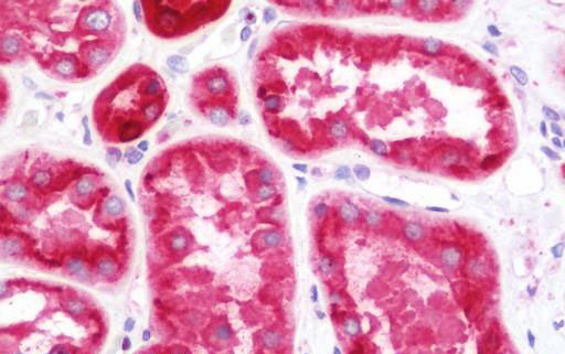 Anti-SERPINF2 / Alpha-2-Antiplasmin antibody IHC staining of human kidney.
