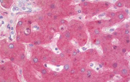 Anti-KLKB1 / Plasma Kallikrein antibody IHC staining of human liver.