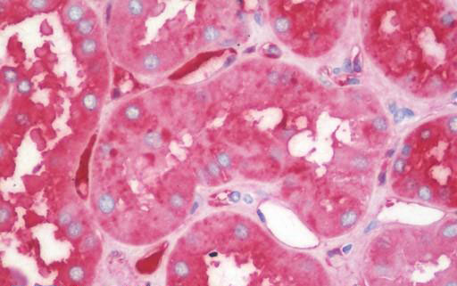 Anti-KLKB1 / Plasma Kallikrein antibody IHC staining of human kidney. |