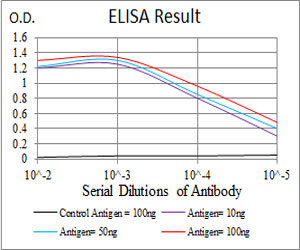 Figure 1:Black line: Control Antigen (100 ng);Purple line: Antigen(10ng);Blue line: Antigen (50 ng);Red line: Antigen (100 ng);