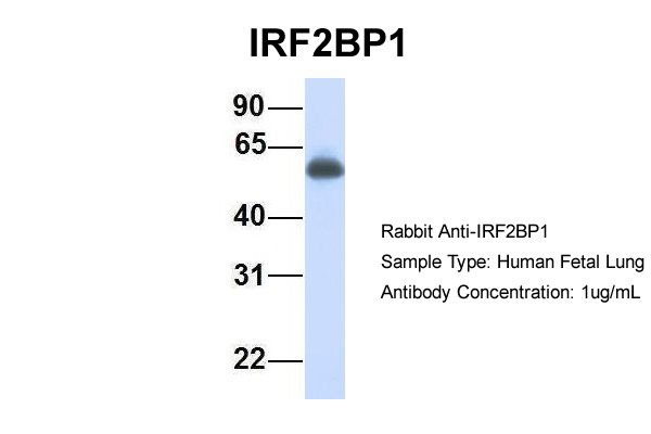 Host:Rabbit Target Name:IRF2BP1 Sample Tissue:Human Fetal Lung Antibody Dilution: 1.0μg/ml |