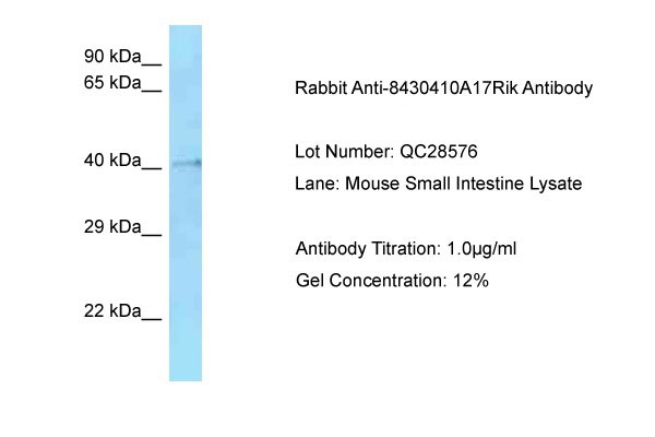 Host: Rabbit Target Name: 8430410A17Rik Sample Tissue: Mouse Small Intestine Antibody Dilution: 1.0μg/ml |