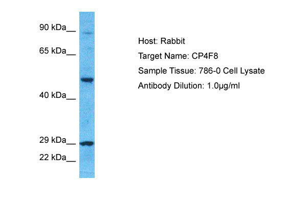 Host: Rabbit Target Name: CP4F8 Sample Tissue: 786-0 Whole Cell lysates Antibody Dilution: 1.0μg/ml |