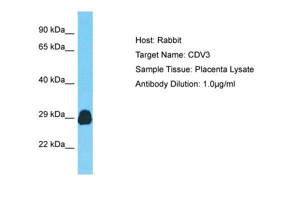 Host: Rabbit Target Name: CDV3 Sample Tissue: Placenta lysates Antibody Dilution: 1.0μg/ml |