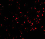 Immunofluorescence of IKK alpha in Jurkat cells with IKK alpha antibody at 10 μg/mL. |
