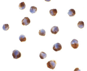 Immunocytochemistry of caspase-5 in P815 cells with caspase-5 antibody at 2 μg/mL.