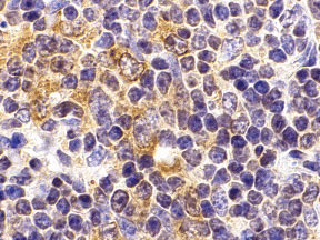 Immunohistochemistry of TLR9 in mouse spleen cells with TLR9 antibody at 2 μg/mL.