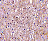 Immunohistochemistry of TWEAK in human brain tissue with TWEAK antibody at 10 μg/mL. |