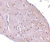 Immunofluorescence of Wnt10a in Human Skeletal Muscle tissue with Wnt10a antibody at 20 μg/mL. |