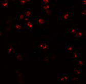 Immunofluorescence of NALP3 in K562 cells with NALP3 antibody at 20 μg/mL. |