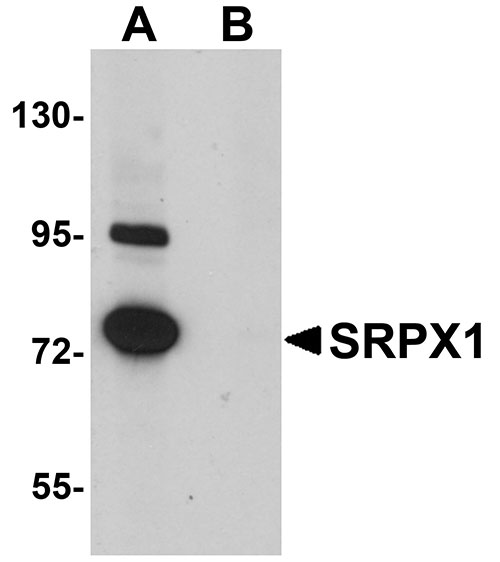 SRPX1 Antibody: SRPX1 was initially identified as a candidate gene for X-linked retinitis pigmentosa and is overexpressed in the trabecular network of the eye in glaucoma conditions. Its expression is significantly downregulated in a number cancer cell lines and malignant tumor tissues and its ectopic expression induces apoptosis through the endoplasmic reticulum and the activation of caspase-12, -9, and -3, indicating that it can function as a tumor suppressor. SRPX1 is also involved with the regulation of autophagy under low serum conditions and can associate with Rab24, a member of the Rab GTPase protein family that is involved in autophagy. This association of SRPX1 with Rab24 is enhanced during autophagy.