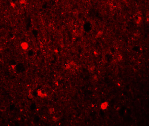 Immunofluorescence of SRPX1 in human brain tissue with SRPX1 antibody at 20 μg/mL. |