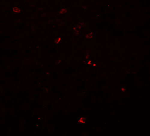 Immunofluorescence of BCAS3 in human breast carcinoma tissue with BCAS3 antibody at 20 μg/mL. |