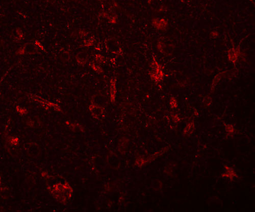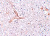 Immunofluorescence of ZC3H12C in human brain tissue with ZC3H12C antibody at 20 μg/mL. |